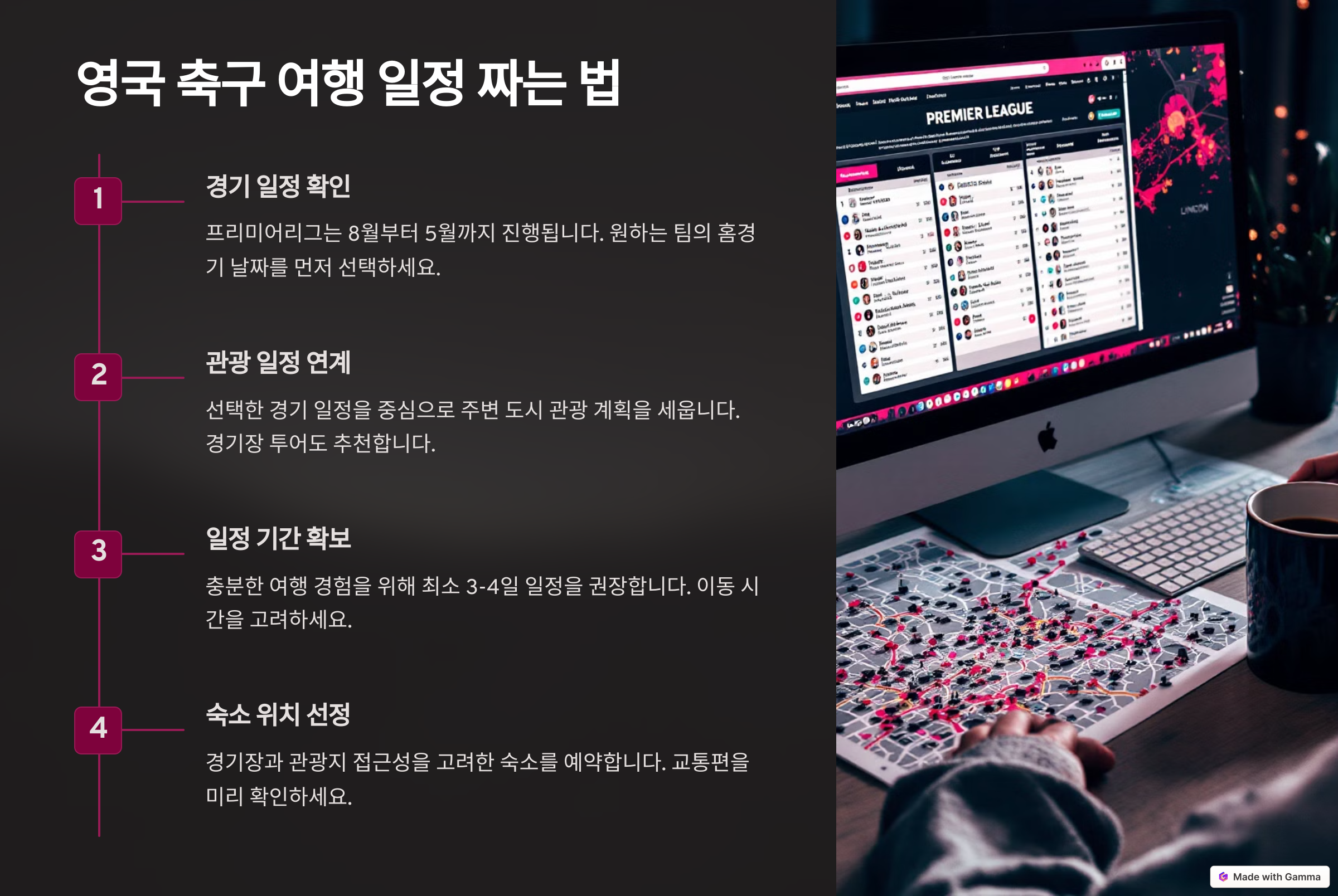 그럼, 축구 여행의 핵심인 일정 짜는 법을 알아볼까요? 🗺️