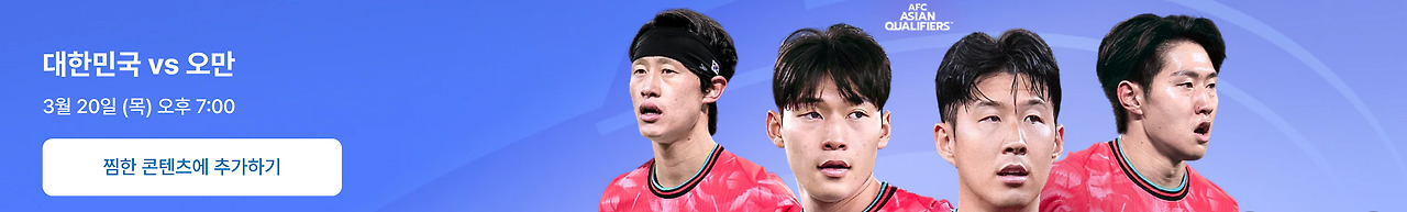 | 한국 🇰🇷 VS 오만 🇴🇲 | 3월 20일 (목) 20:00 | 고양종합운동장 | SBS, 쿠팡플레이 |