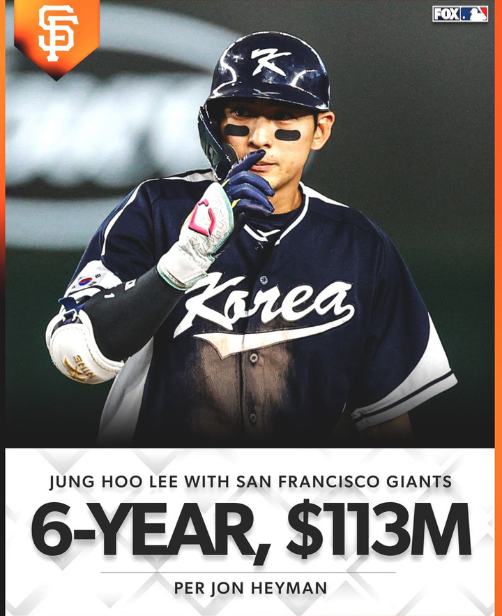 | 이정후 | 113,000,000 | 18,830,000 | 6년 (2024~2029) | 샌프란시스코 자이언츠 |