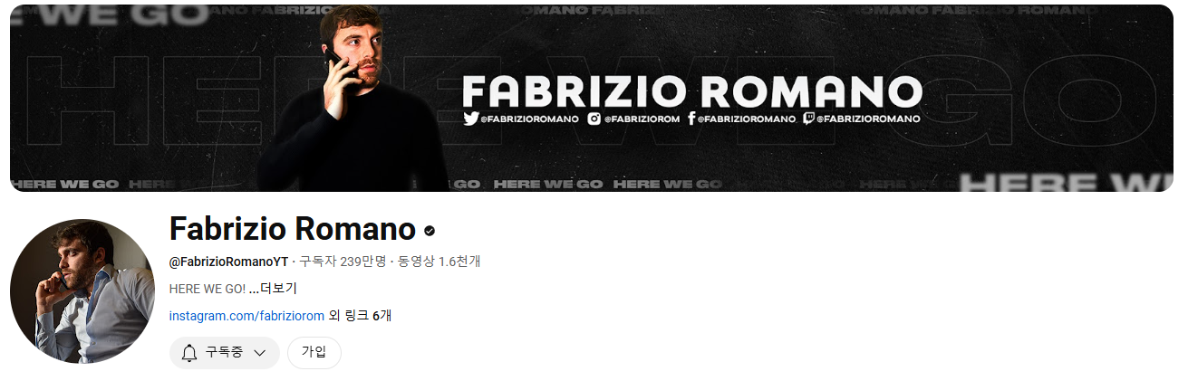 앞선 SNS 포스팅편에서 소개해드린 이적시장 전문 기자 Fabrizio Romano 기자의 유튜브 채널입니다. 이 채널의 영상은 10분내외로 짤막한 영상이 대부분인데, Romano 기자가 취재한 해축 이적시장의 이야기 특히 이적 뒷이야기 등등의 소식을 접할 수 있습니다. Romano 기자가 이탈리아 사람인데 '이탈리아인의 영어 발음'을 접할 수 있다는 장점 아닌 장점이 있습니다. 단점이라고 하면 역시나 자막이 없다는 것인데 내용 자체가 엄청 어려운게 아니라 영어를 중간 이상 하시는 분들은 내용의 7~80%는 이해할 수 있을거 같습니다.