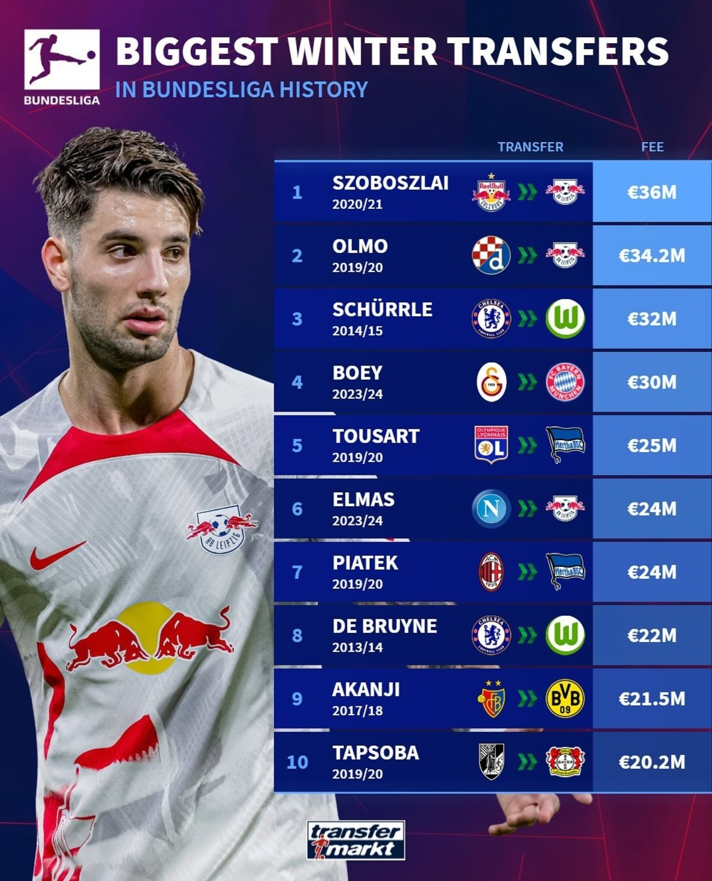 1위 소보슬라이 (잘츠부르크->라이프치히), 2위 다니 올모 (디나모 자그레브->라이프치히), 3위 쉬얼레 (첼시->볼프스부르크)