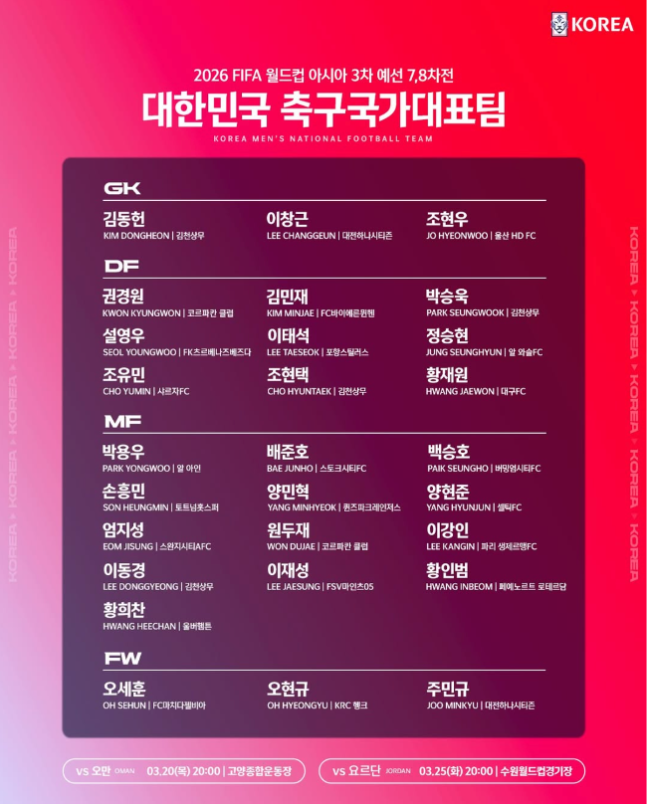 ⚽ 대한민국 축구대표팀 3월 A매치 명단 분석